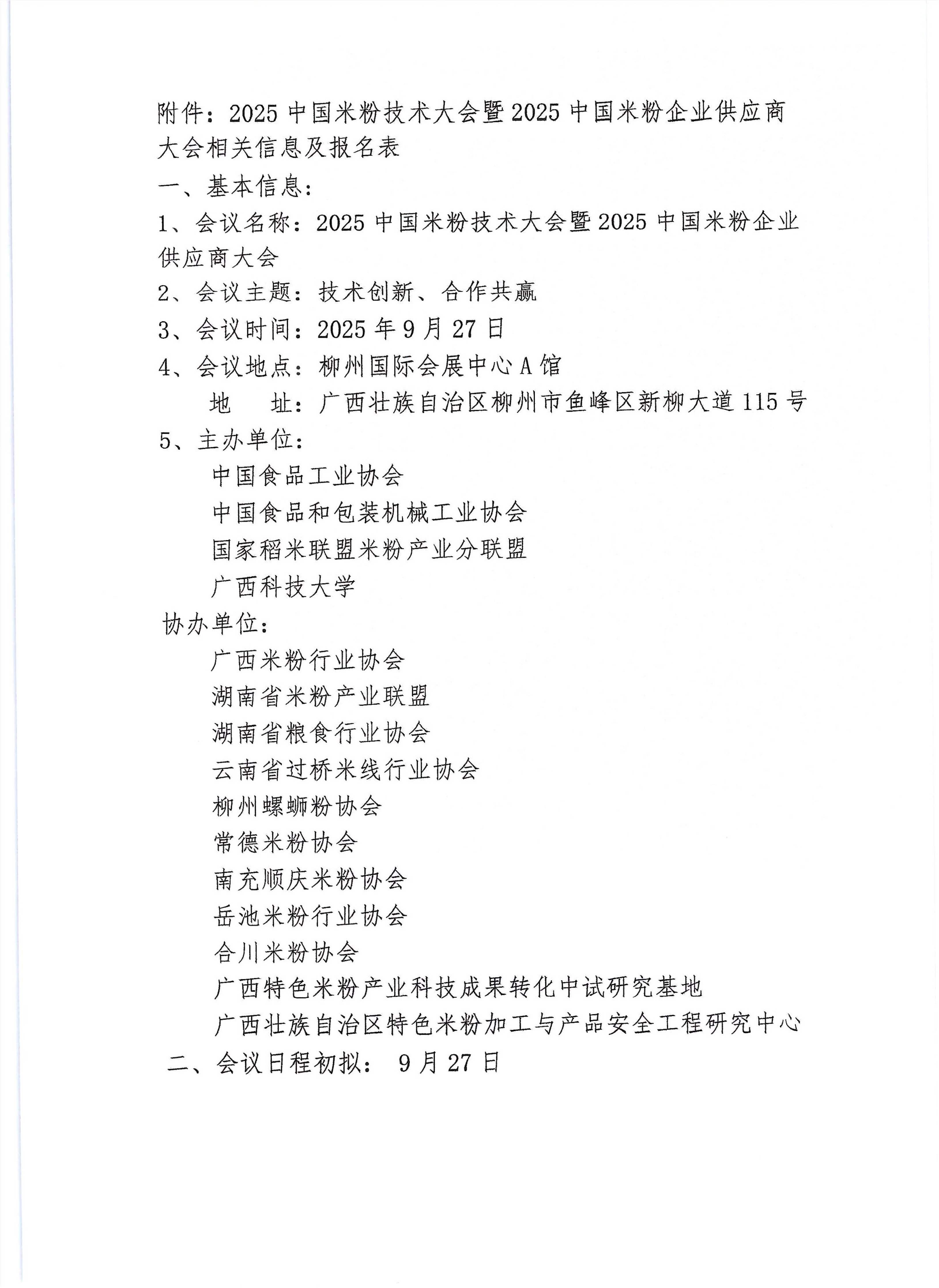 批准单位: 国家商务部 主办单位: 中国食品工业协会 中国食品和包装机械工业协会 中国农业科学院农产品加工研究所 国家稻米联盟米粉产业分联盟 广西食品和包装机械工业协会 广西科技大学 协办单位: 柳州市螺蛳粉协会 绵阳市米粉产业行业协会 云南省过桥米线行业协会 广东省食品和包装机械行业协会 广西柳州螺蛳粉工程技术研究中心