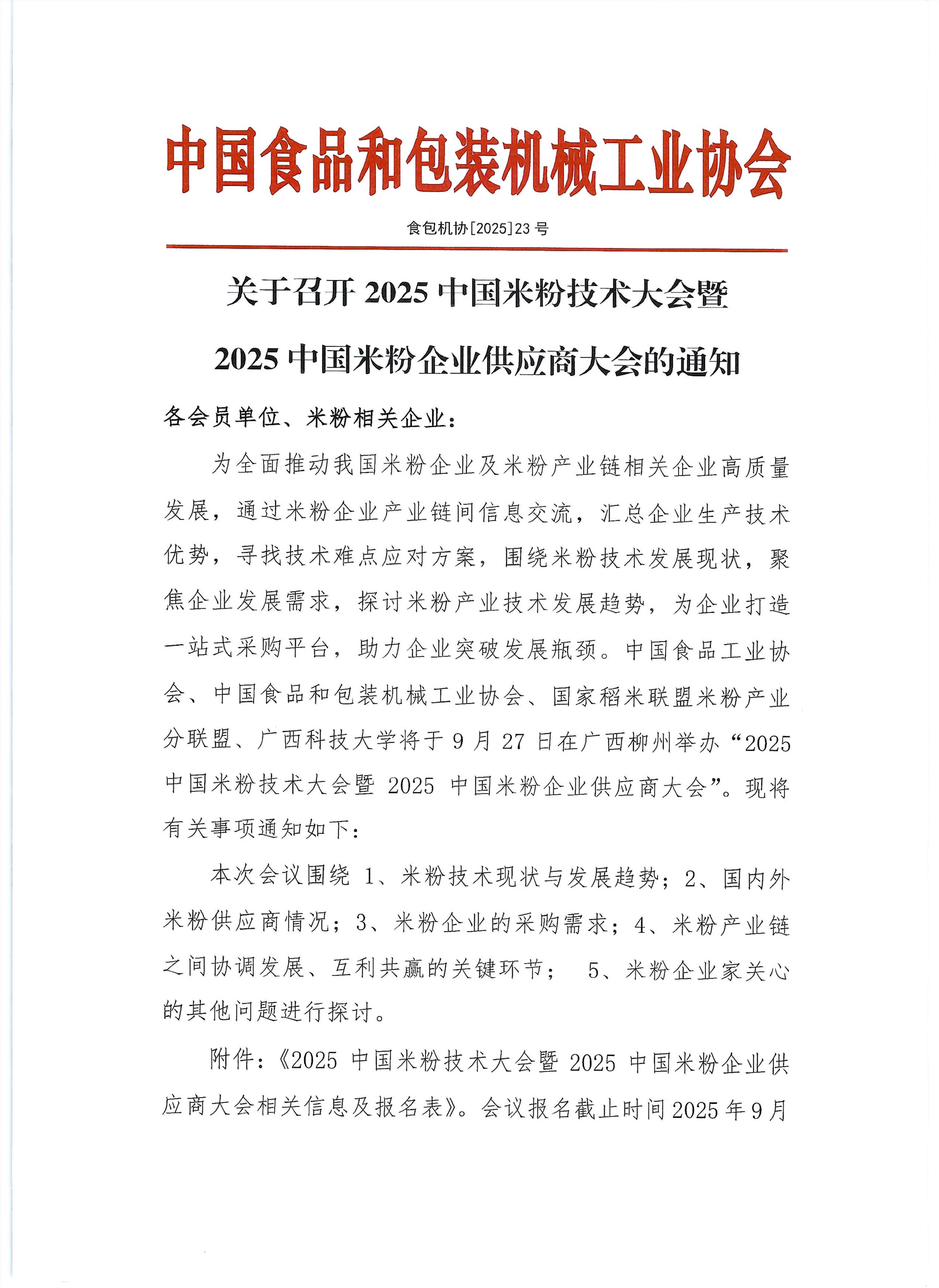 2025中国(柳州)国际米粉产业博览会盛大开幕 2025-11-25 9月27日,2025中国(柳州)国际米粉产业博览会、2025中国(柳州)餐饮食材博览会、2025柳州螺... 关于召开2025中国米粉企业产需对接大会的通知 2025-08-22 关于召开2025湖南米粉企业可持续发展座谈会暨2025中国(柳州... 2025-06-19 7月2日在湖南常德召开湖南米粉企业可持续发展座谈会,湖南米粉企业齐聚鑫三香!汇总企业发... 关于召开2025江西米粉企业可持续发展座谈会暨2025中国(柳州)... 2025-04-16 关于举办2025柳州螺蛳粉产业博览会、2025中国(柳州)国际米... 2025-03-24